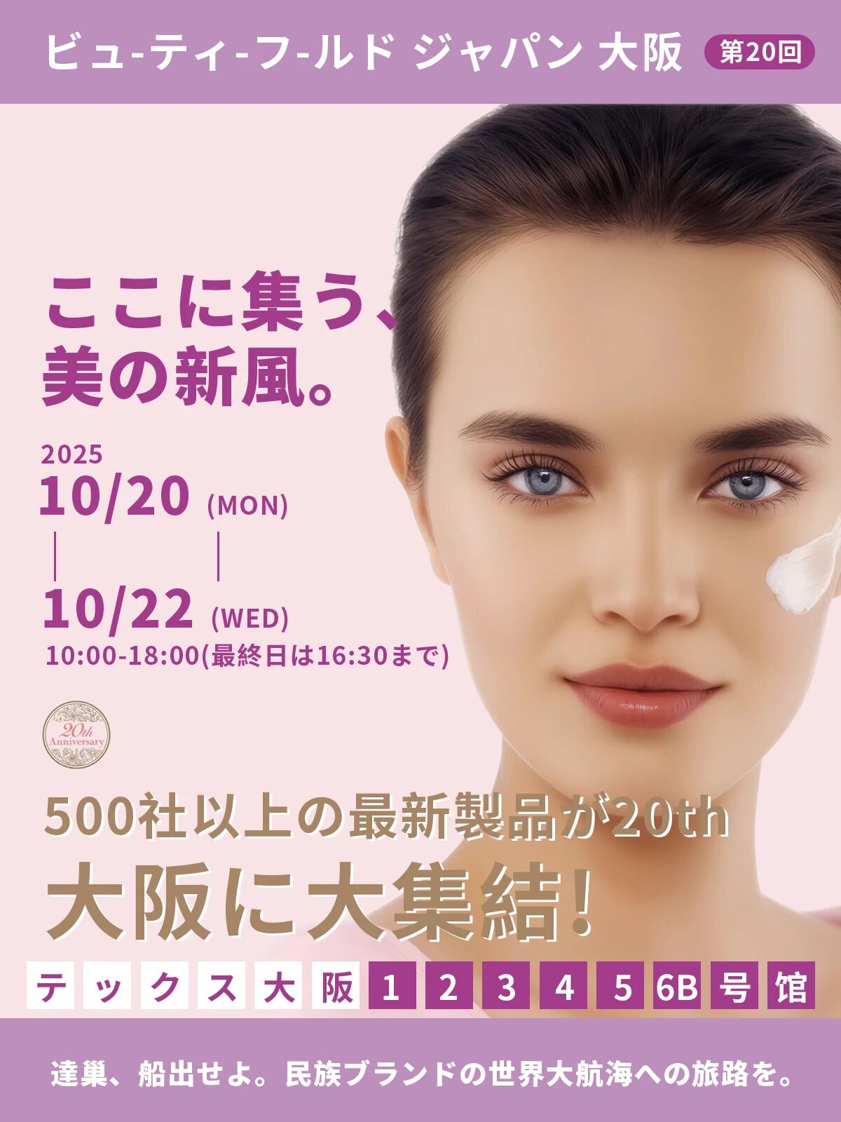 10月20~22日,第20届日本大阪美容展览会(Beautyworld Japan Osaka)于大阪国际会展中心盛大启幕。作为亚洲乃至全球美容健康领域最具影响力的行业盛会之一,大会吸引了来自全球数十个国家和地区500+企业参展,展区面积超30000平方米,涵盖生殖健康、抗衰科技、精准营养、医美器械等核心领域。中国医研共创品牌达巢、达精携科研成分空降大阪,引发日本民众与媒体高度关注。
